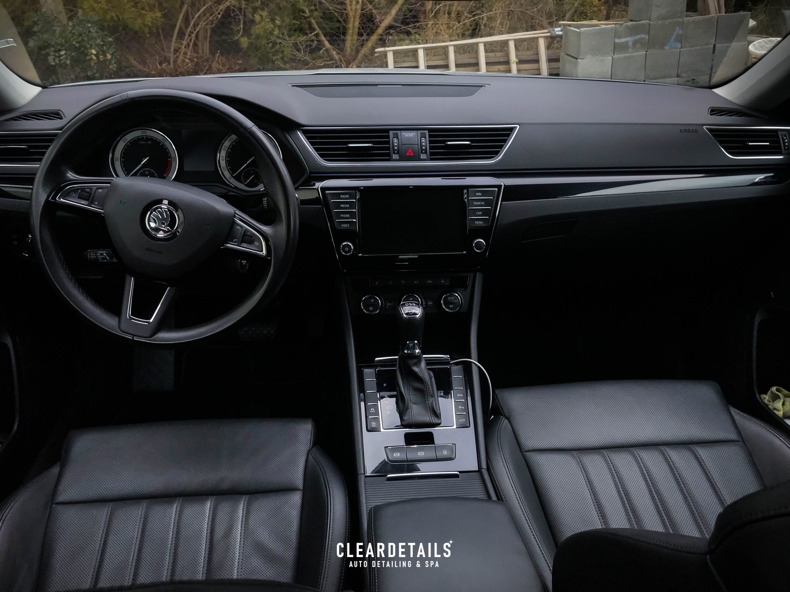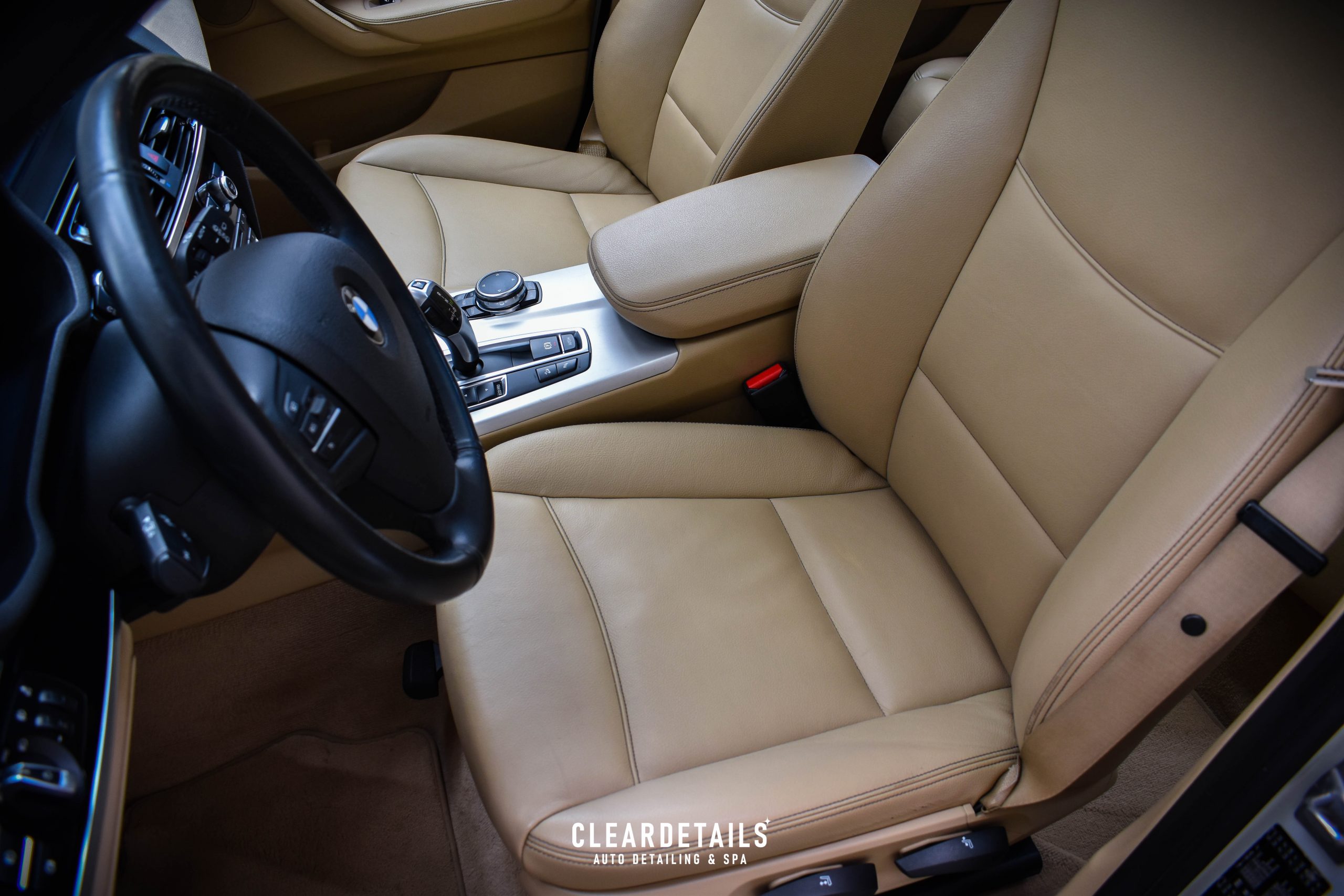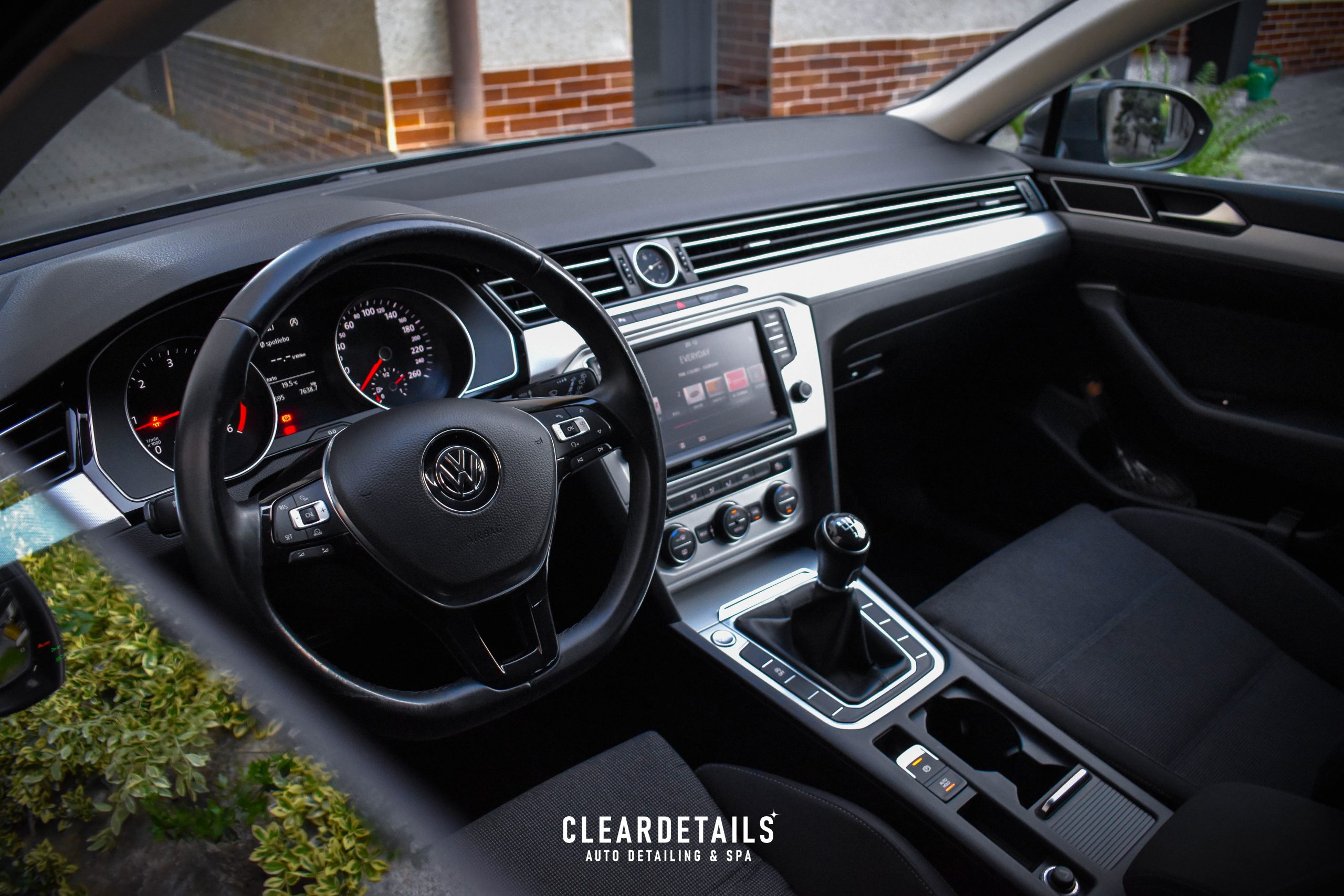 Vysátí interiéru, čištění a ošetření plastových prvků, vyleštění oken. Hloubkové čištění textilních částí a kožených částí. Impregnace kůže. Provonění interiéru.